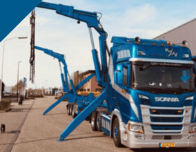 Sinds kort hebben wij een nieuwe kraanwagen. Met deze unieke en zeer geavanceerde kraanwagen breiden wij onze specialisatie in containervervoer verder uit. Met deze speciale DAF vervoeren en plaatsen wij 40/45 ft containers op slecht bereikbare locaties.